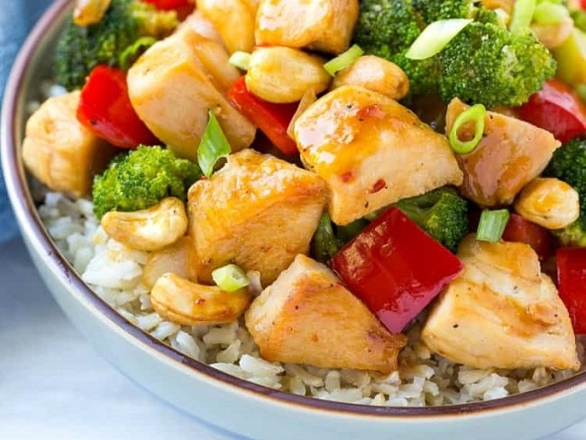 9.起鍋時在灑上腰果與蔥花,搭配上糙米飯就完成。